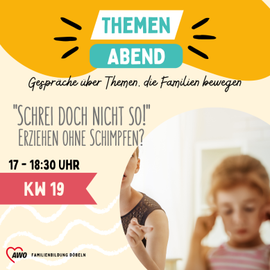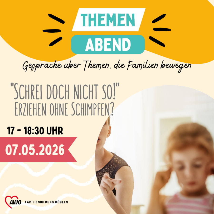 Geht Erziehen eigentlich wirklich ohne Schimpfen? Viele Eltern wünschen sich einen liebevollen und respektvollen Umgang mit ihren Kindern – und werden im Alltag doch manchmal laut. In diesem Workshop gehen wir der Frage nach, ob und wie Erziehen ohne Schimpfen möglich ist. Sie erfahren, warum wir in stressigen Momenten oft anders reagieren als geplant und bekommen alltagstaugliche Impulse und konkrete Ideen für einen ruhigen und klaren Umgang mit Ihrem Kind.
